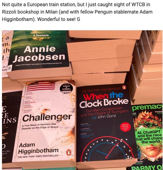 It’s also available in more and more places on the Continent. The book was recently sighted by my UK publisher at Rizzoli Bookstore in Milan. If you happen to see one in Europe, particularly in a train station bookstore, please do send me a pic!