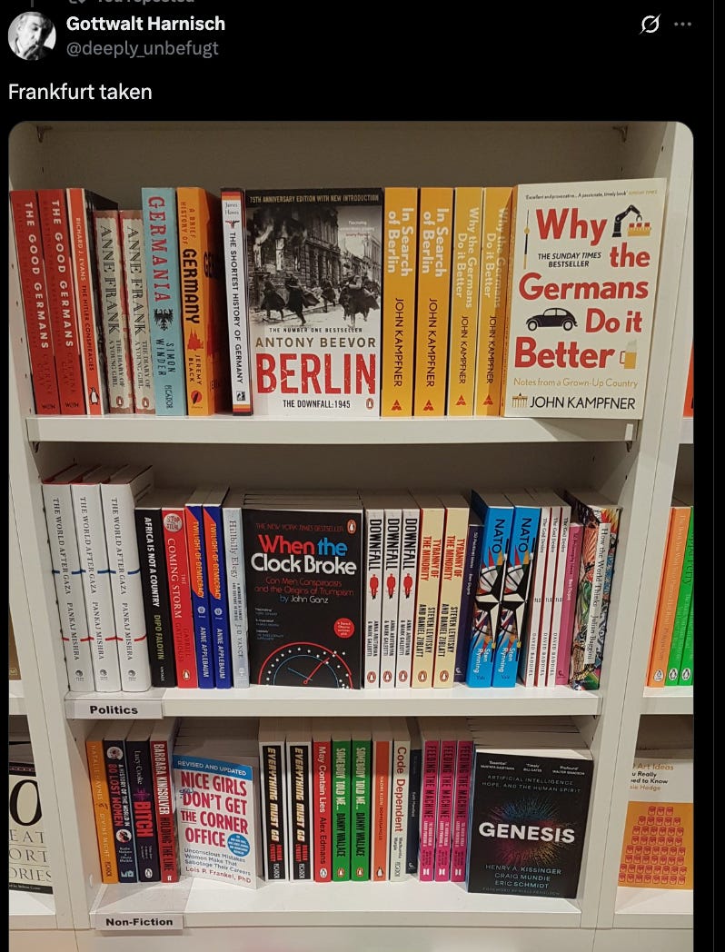 You can also buy When the Clock Broke, now out in paperback, available wherever books are sold. If you live in the UK, it’s also available there. I’m also thrilled to announce it’s available on the continent, too. Twitter account @deeply_unbefugt spotted it in the Frankfurt Hauptbahnhof! It’s always been my dream to have my book for sale at a European train station, as I bought many of what became my most cherished books in the English language section of those stores.