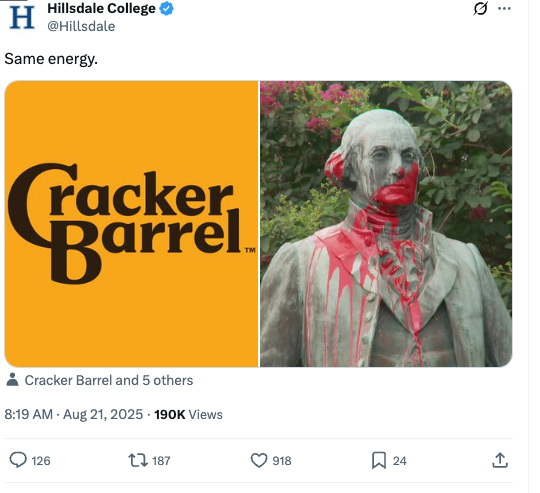 And for good measure, here’s a tweet from conservative Hillsdale College that I think captures the entire thing: